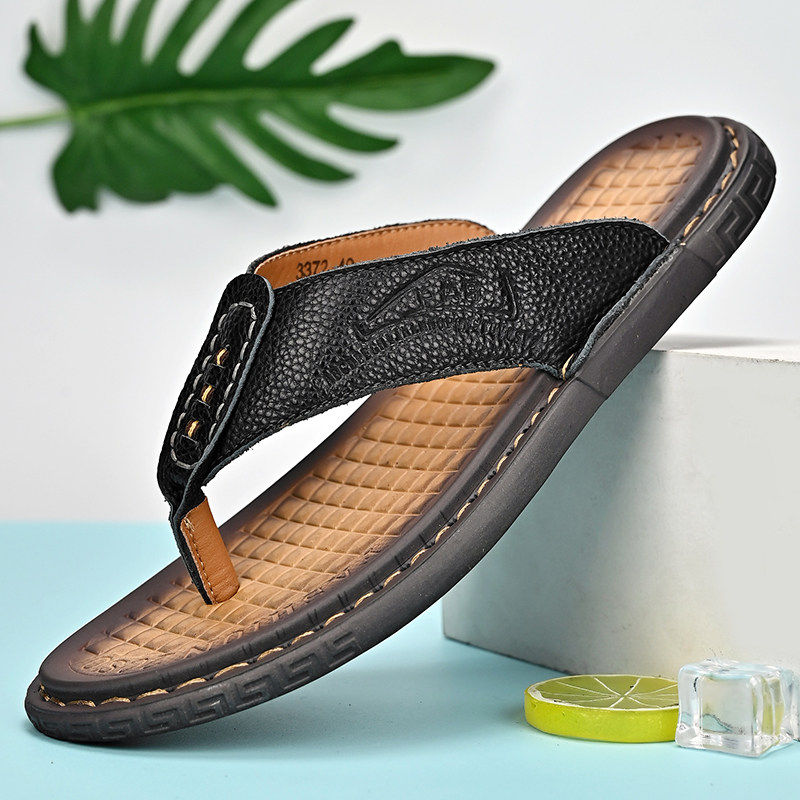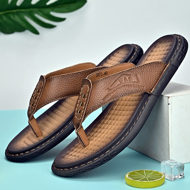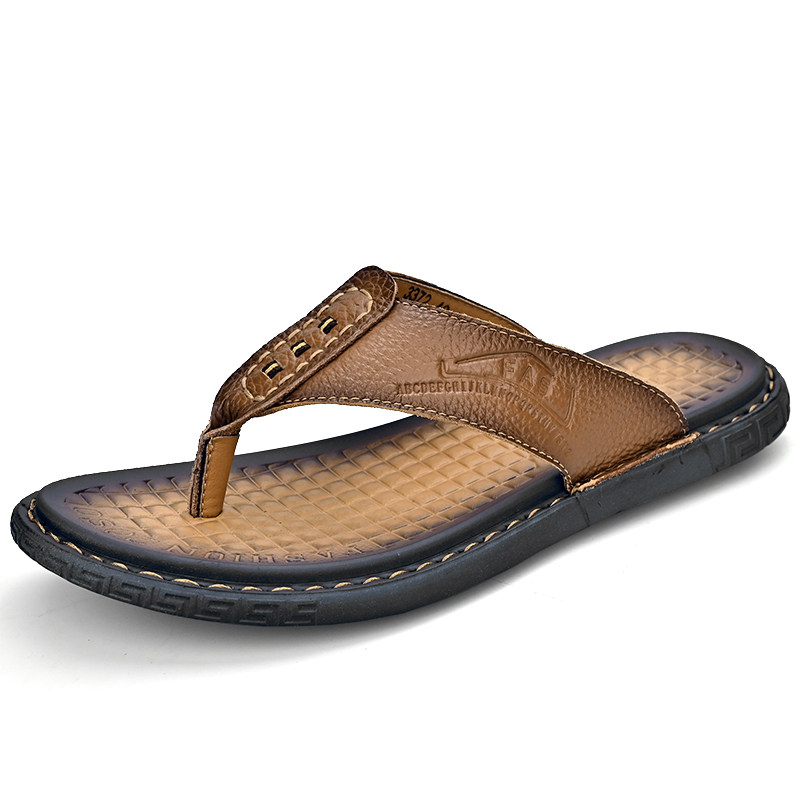 Genuine leather slippers men's summer wear personality sandals Korean version of cowhide flip flops men's beach shoes outdoor casual trendy drag