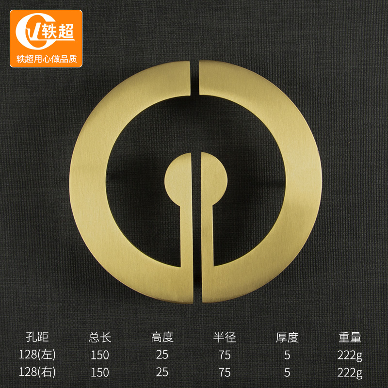New Chinese furniture copper accessories decoration semi-round wardrobe whole cabinet antique cabinet door handle golden copper handle