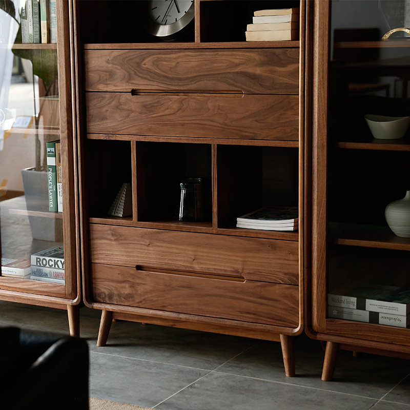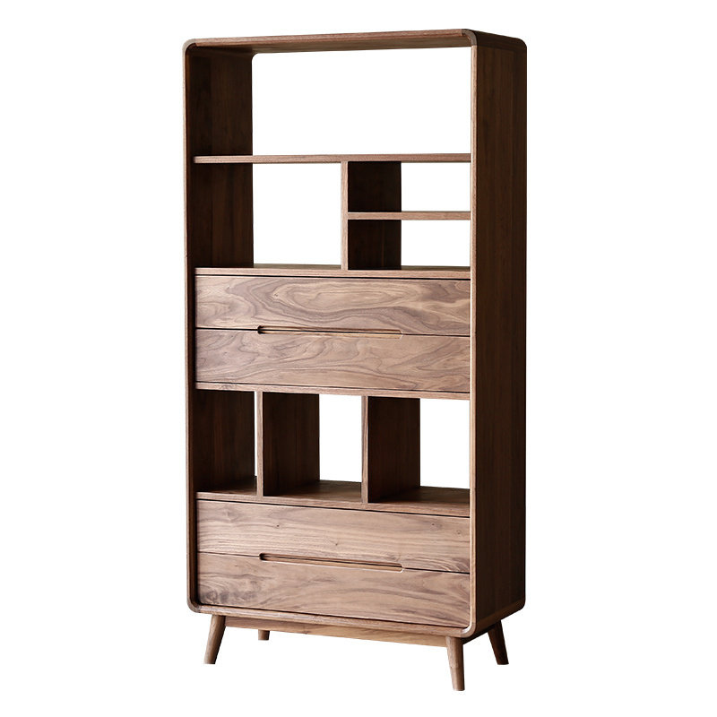 Black walnut Nordic bookshelf display cabinet porch cabinet combination bookcase solid wood bookcase