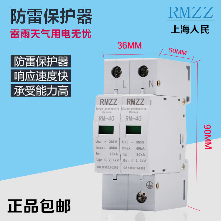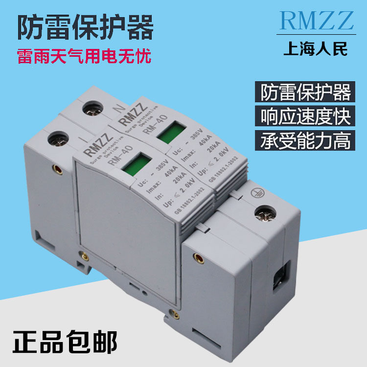 Shanghai people's lightning arrester 220V household surge protector 2p 40KA electrophoresis lightning protection switch