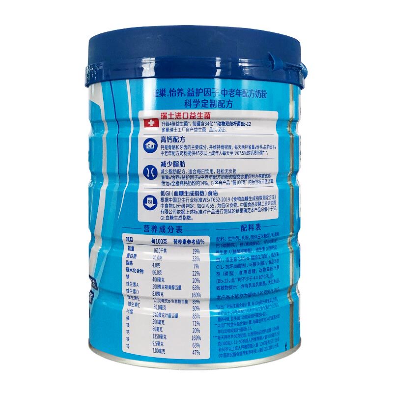 Nestlé Middle Age Nutrition Milk Powder 850g*2 cans of high calcium beneficial factor reduces fat sugar