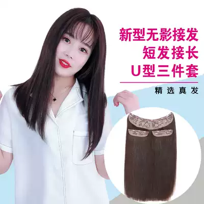 New shadowless hair piece real hair no trace one piece U-shaped wig piece 3 pieces of women's short hair