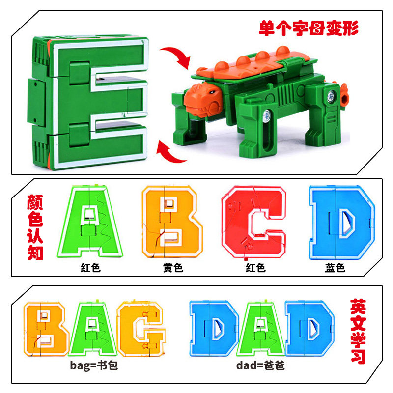 New Lenew Diamond Team 26 English Alphabet Dinosaur Puzzle Deformation Robot Early Teaching Building Block Suit 2918