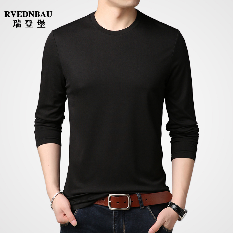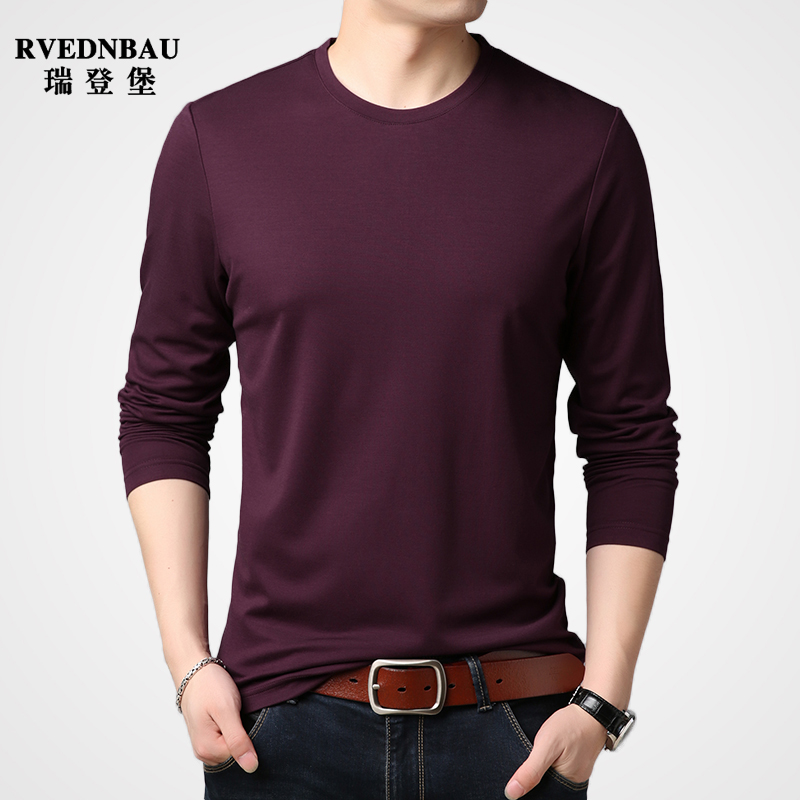 Spring and autumn new men's round neck solid color long sleeve T-shirt fashion simple Korean version of men's wild base T-shirt