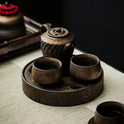 Japanese-style rough pottery hand-made retro tea tray ceramic water storage dry bubble plate office tea table Zen ink tea set tea pot bearing