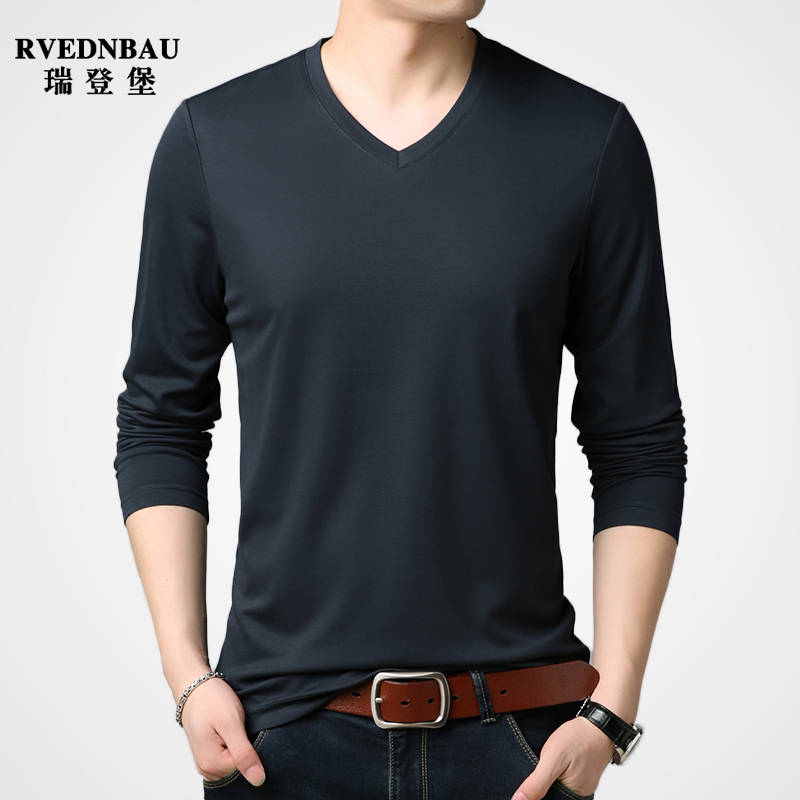 2022 fall casual men's V collar pure color long sleeve T-shirt 100 hitch in Korean version casual men's clothing with undershirt big size