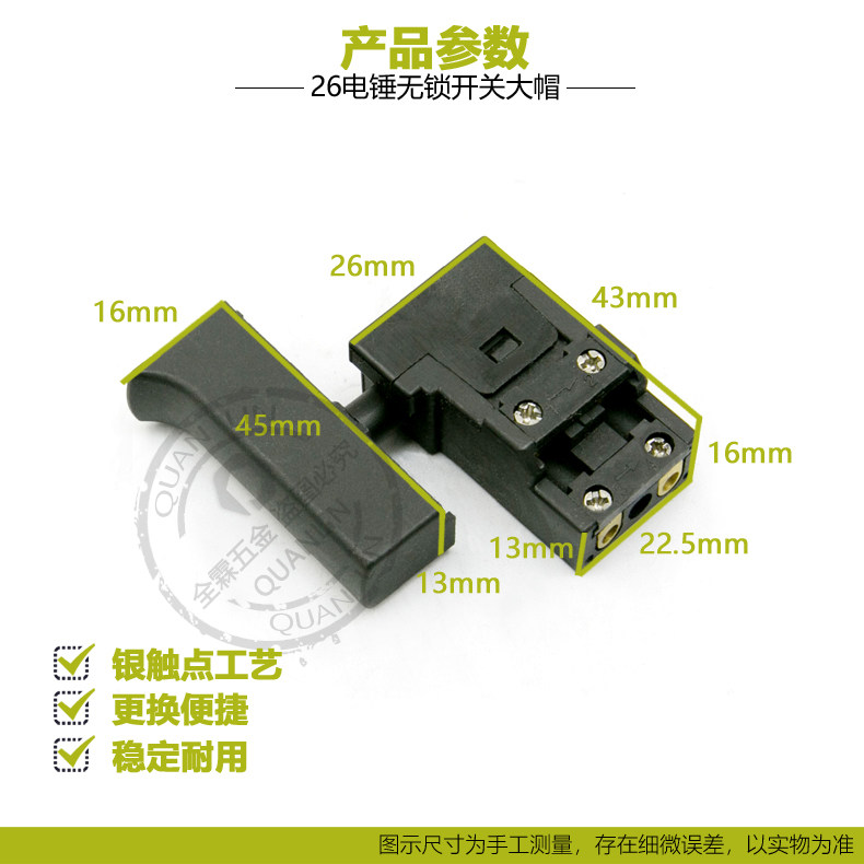 26 electric hammer drill switch dust-proof without lock east into 03-26 new long handle large cap impact drill accessories Full copper silver contact point