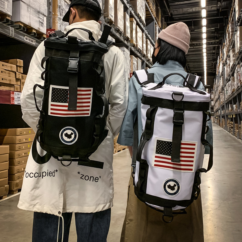 Street trend back backpack men's large-capacity hip-hop tide brand messenger student schoolbag women's dual-use travel fitness backpack