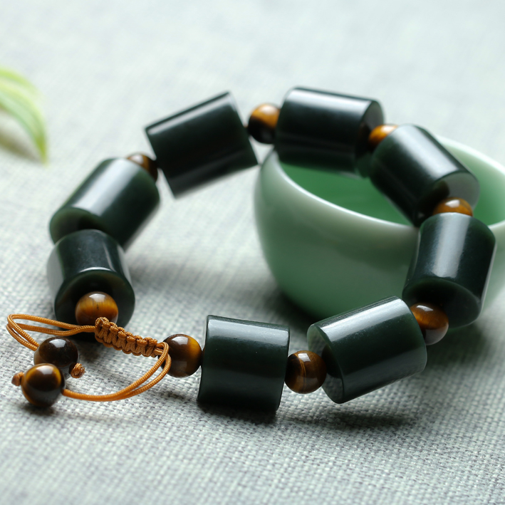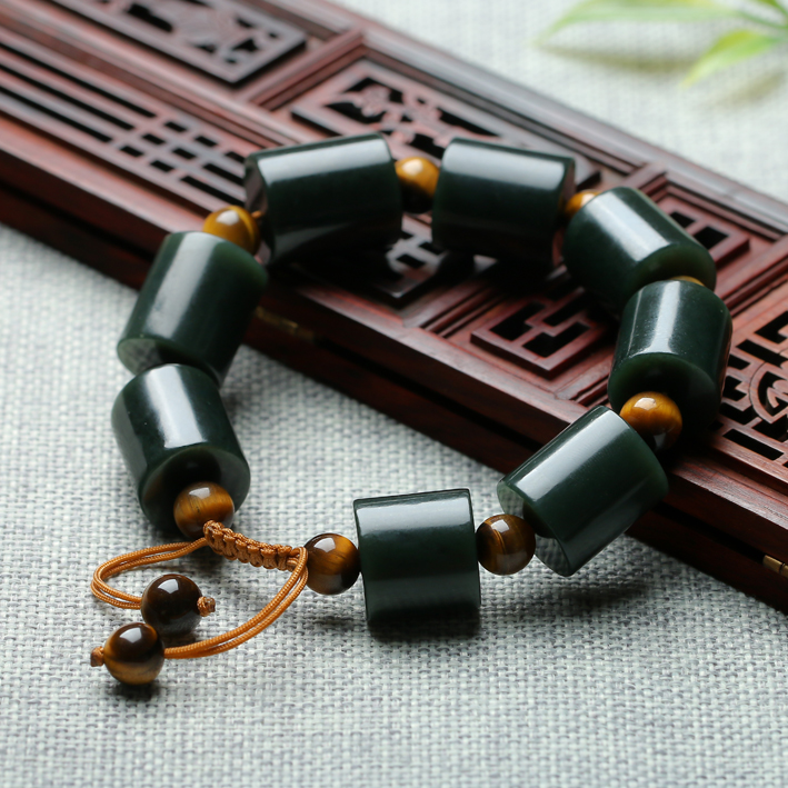 Yuan starts shooting Xinjiang and Tian Yuqing Yu road through a string of natural jade barrel bead bracelet jewelry