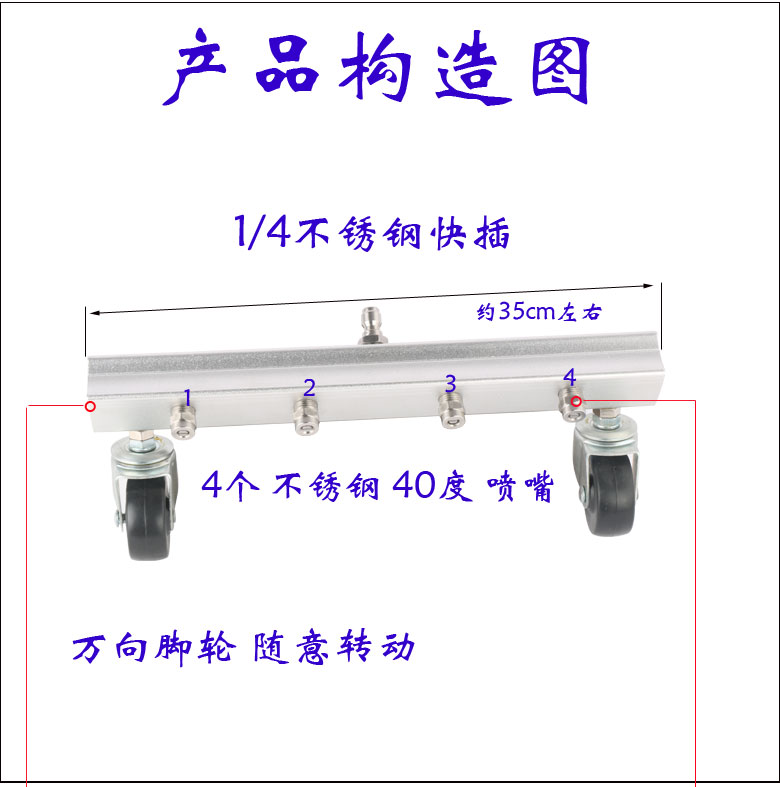 Net red identical cleaning machine sanitation ground wash ground brushed stainless steel commercial water gun high-pressure gun 1 4 quick inserts 4 nozzles