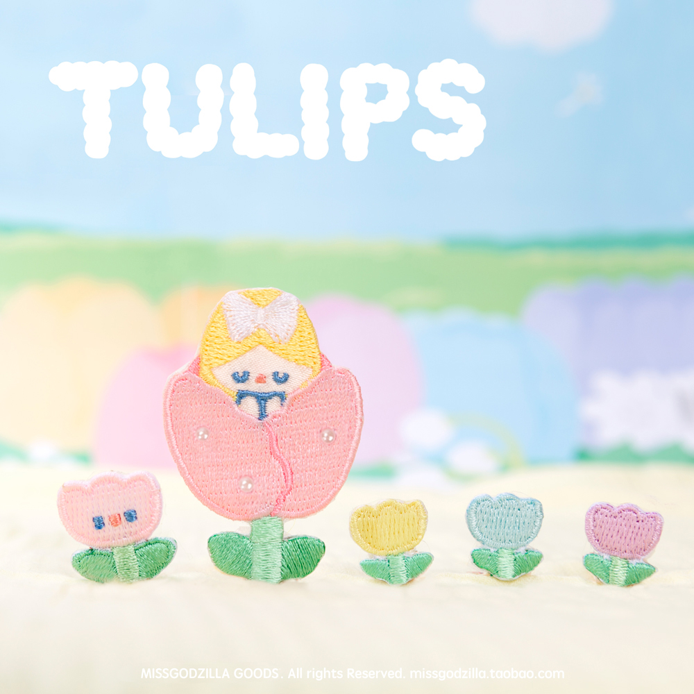 Girl with tulips in hand Tulip Godzilla Flower Playmate-Pig Flower Playmate-Morning Little Tulip Set for Rabbit Farm (6 models and 1 limited special code)