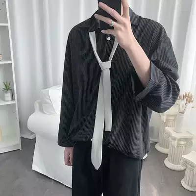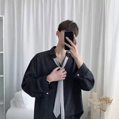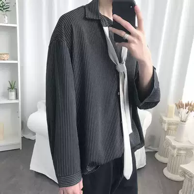 Han Feng heart machine design sense seven-point sleeve striped shirt men Korean trend loose Net Red very fairy shirt man