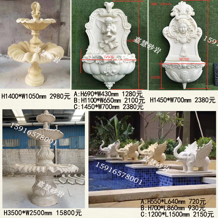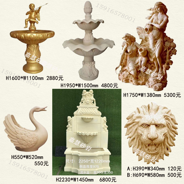 Jiahui sandstone relief swan spray water sculpture garden courtyard water landscape sculpture decoration hotel villa fountain pool