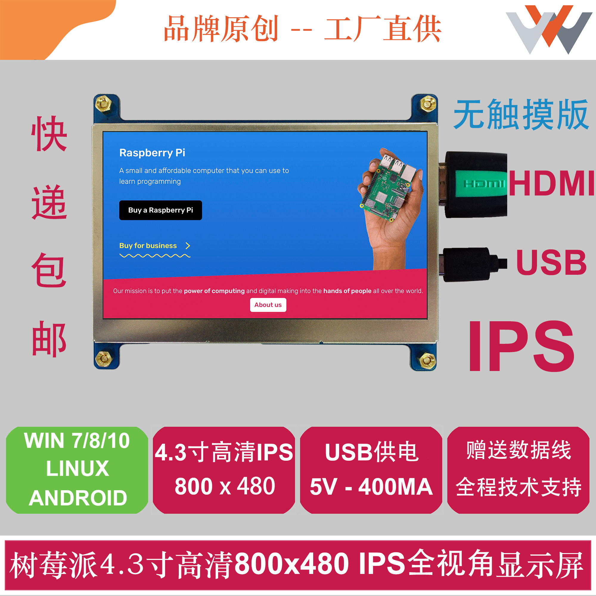 800x480 HD IPS screen HDMI interface