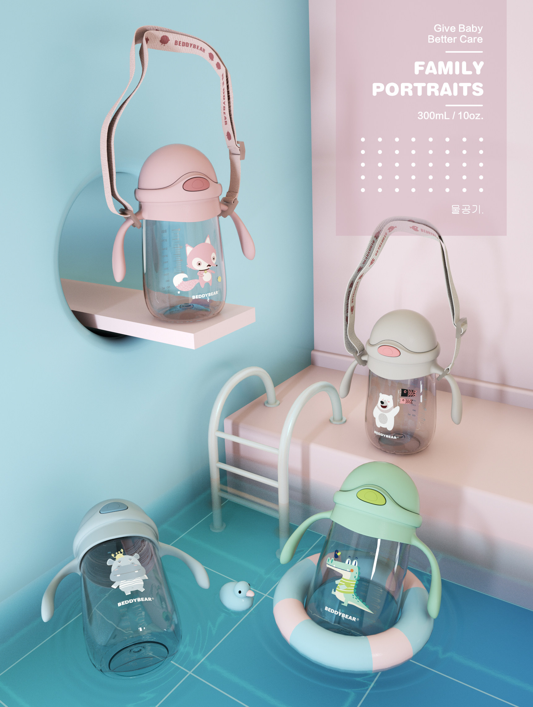 Cup Bear 2019 new learning cup Tritan material polar bear fox alligator hippocampus drink cup