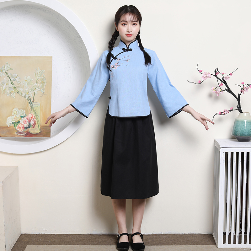 New Republic of China School of National Fashion Women's Fashion Costume Banfu Choral Costumes Graduation Photos Costumes