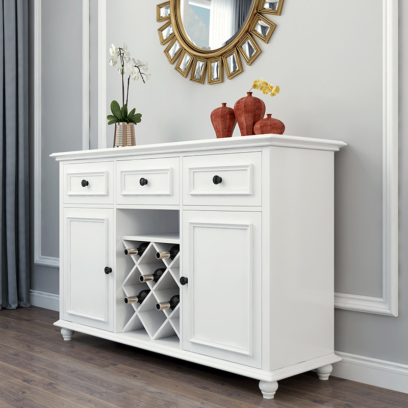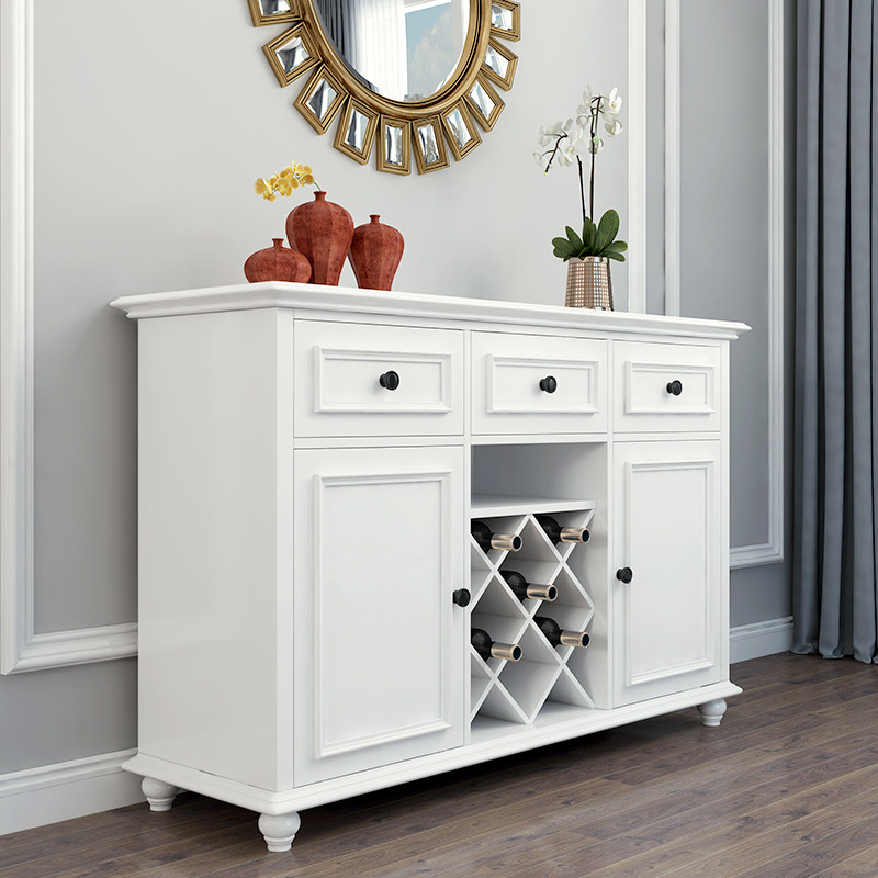 American Countryside Solid Wood Dining Side Cabinet Wine Cabinet Living-room Containing Cabinet Minima Modern White Dwarf Bowl Tray Cabinet Storage Cabinet Customised