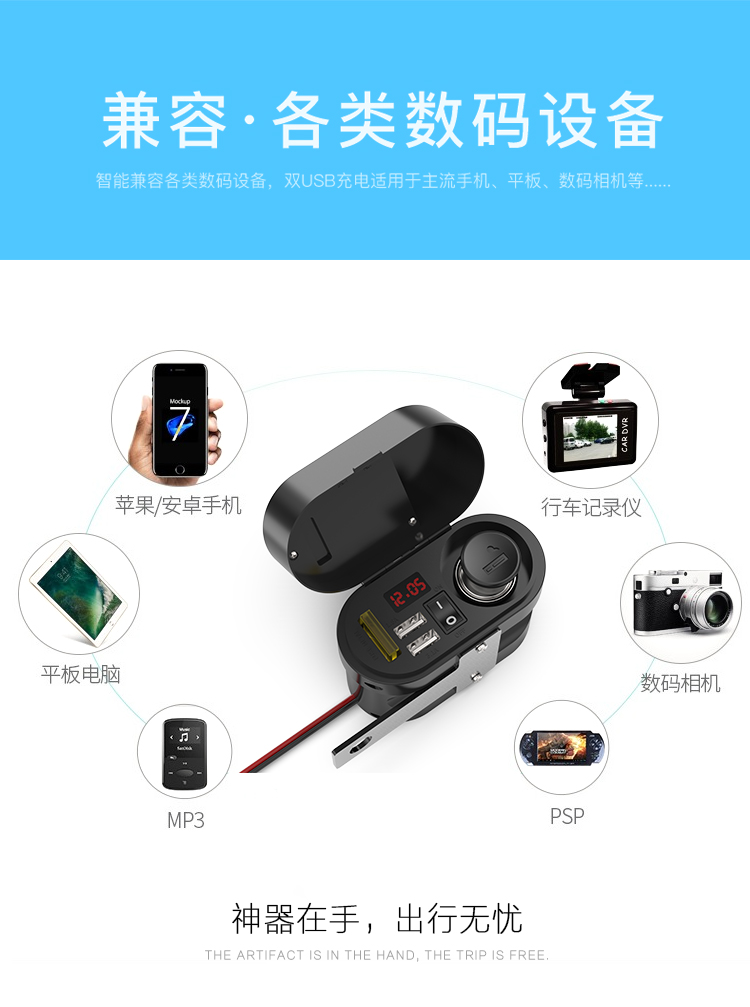 Motorcycle modifier cigarette resistant dual USB car charger car accessories multi - functional 12V mobile phone charger