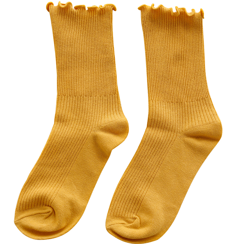 Cotton socks women's middle tube socks Japanese college style spring and autumn simple and versatile thin long version tide fungus lace bubble socks