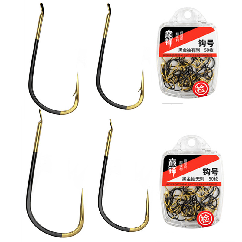 Lake Clear Lake 50 Boxed Tungsten Steel Black Gold Cuff Hook Slim Hook Crucian Fish Hook No Barb Black Sleeve Fish Hook With Stab Cuff