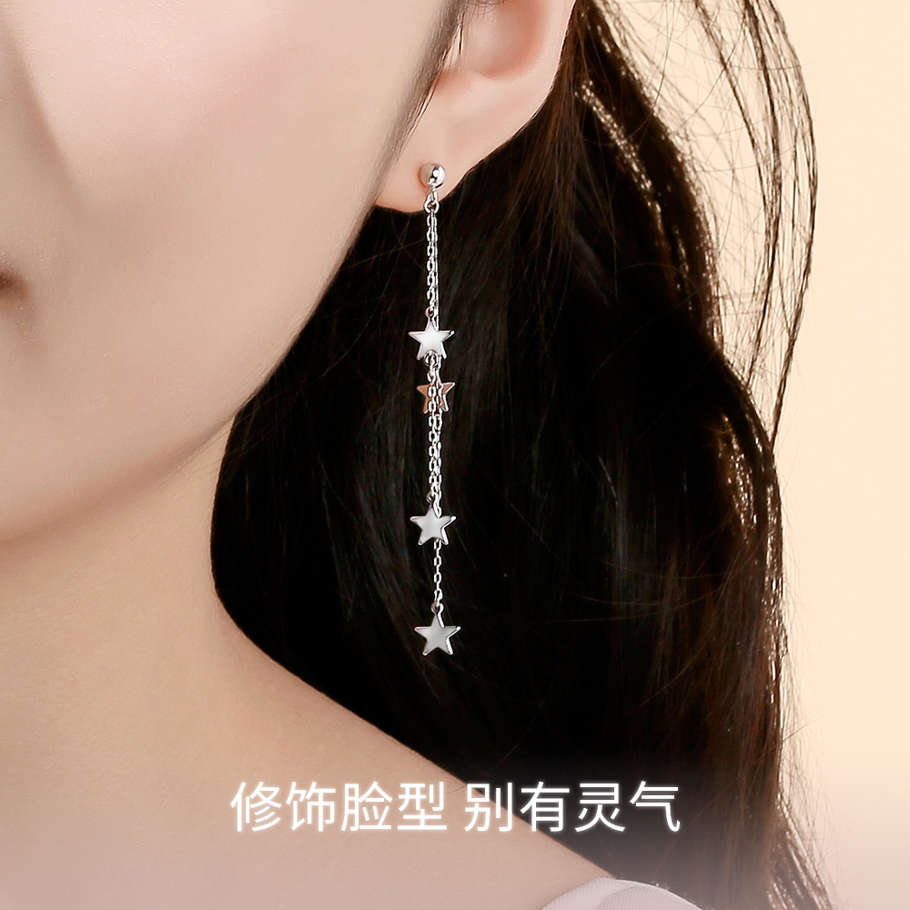 Chow Tai Sang Star Tassel Ear Line Girl Meteor Long Earrings Simple Versatile S925 Sterling Silver Earrings To Girlfriend