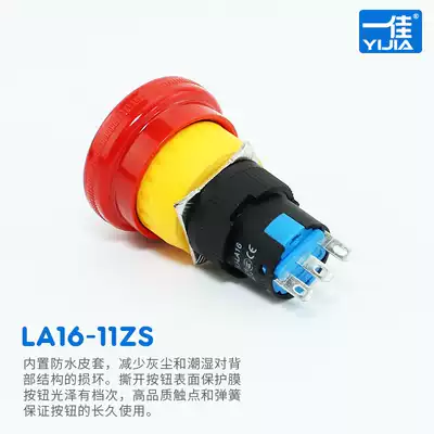 Emergency stop button Emergency button Yijia LA16-11ZS A big head emergency stop tight stop switch 16mm one on one off