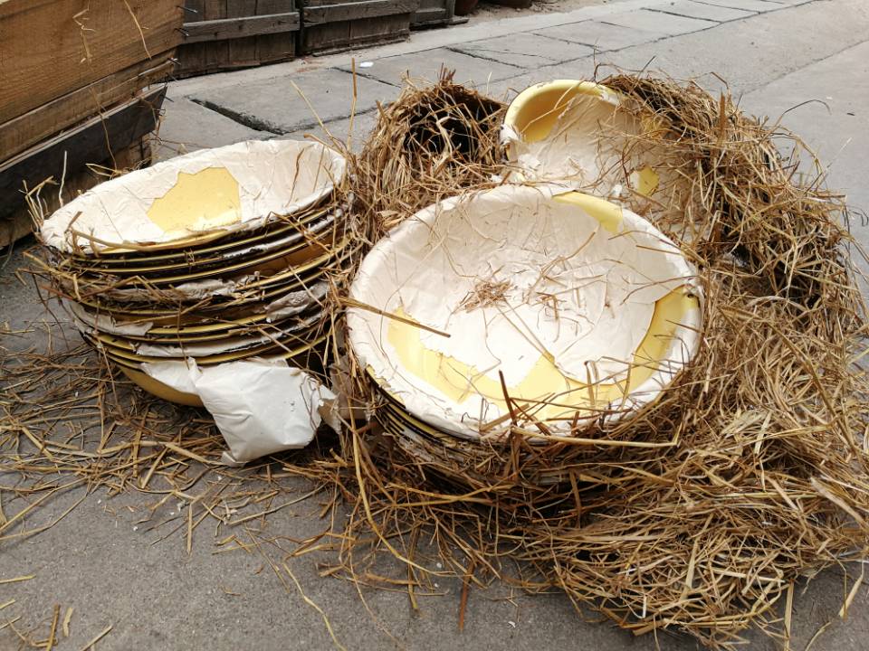 Nostalgic old washbasin 60's yellow washbasin enamel washbasin old-fashioned washbasin