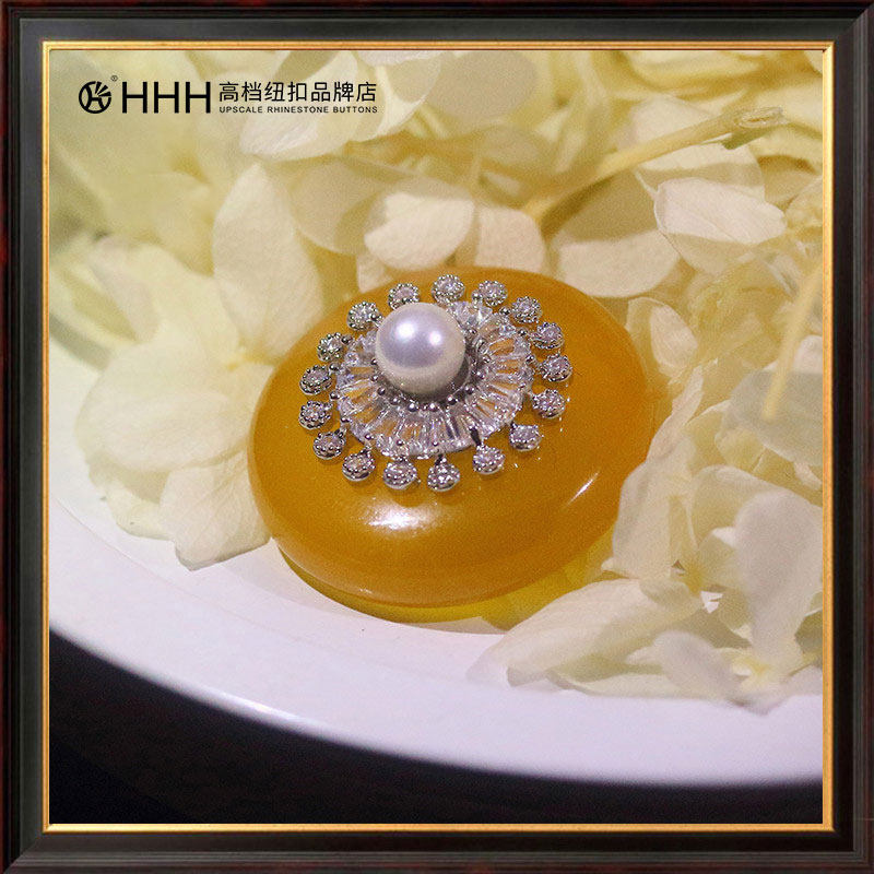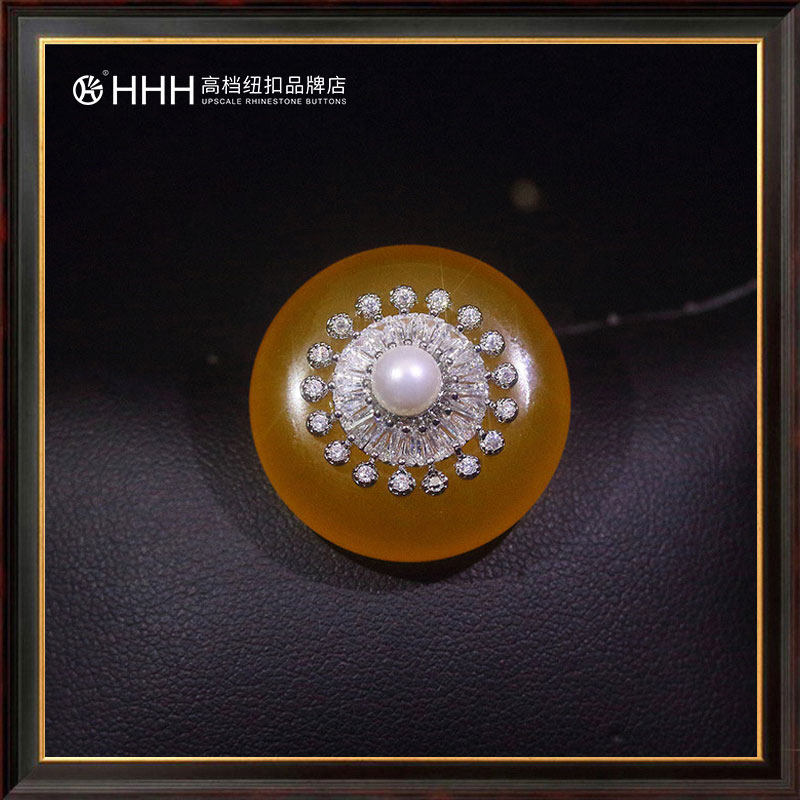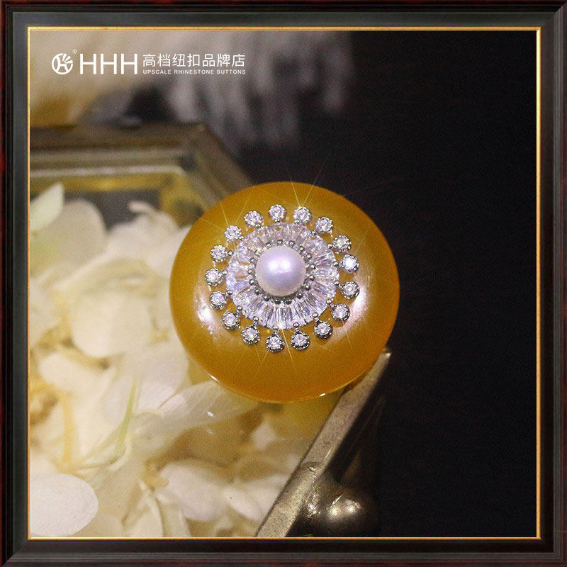 HHH high-end red yellow zircon button jacket suit decorated female circular tuna crystal button diy