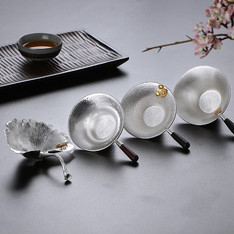 S999 Foot Silver Tea Leak-Inlaid Crab S999 Foot Silver Tea Leak-Inlaid Rose S999 Foot Silver Tea Leak-Hand Hammer Ripple S999 Foot Silver Tea Drain-Ginkgo Leaf