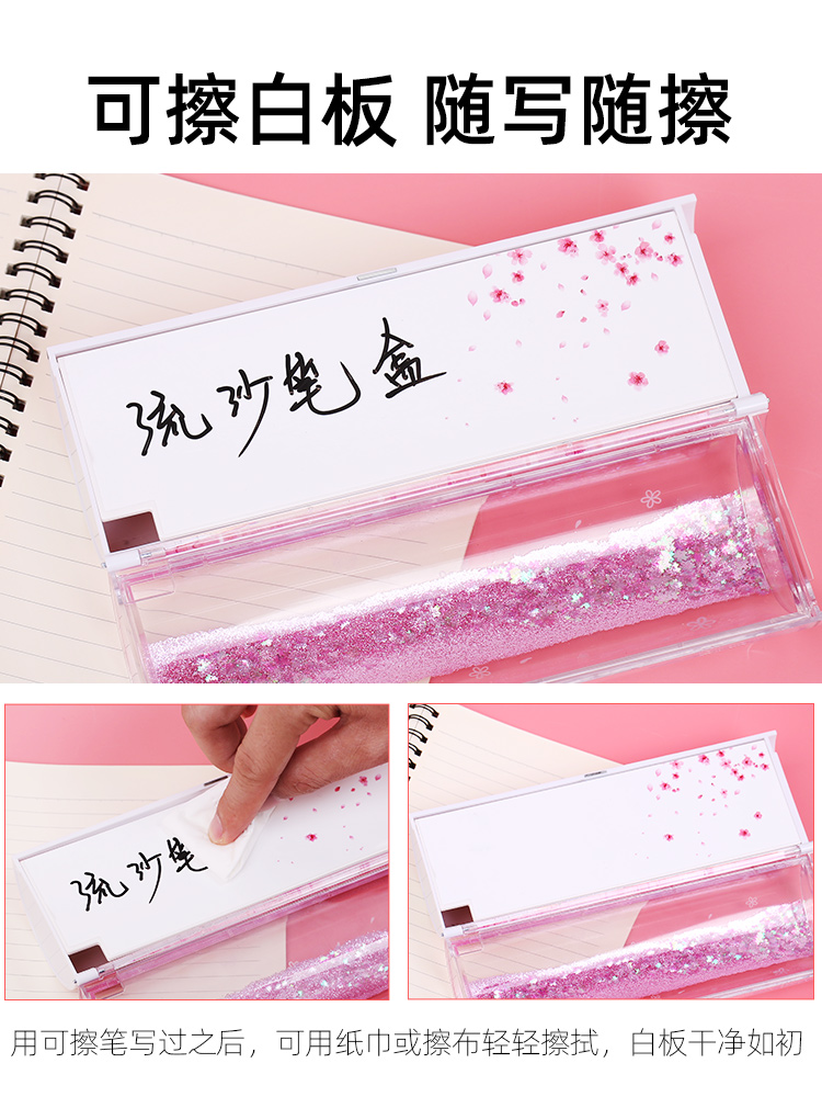 Net Red Pen Box Multifunction Large Capacity Cherry Blossom Flow Sand Writing Case With Code Lock Male And Female Children Kindergarten Cute Pen Bag Creative Children's Festival Gift Elementary School Children Lead Pencil Case