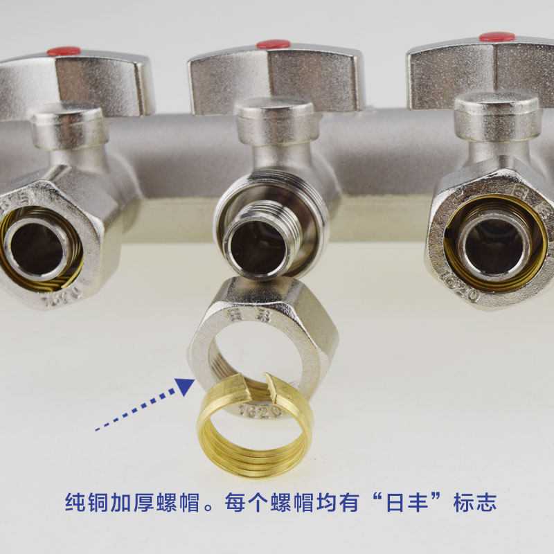 Foshan Rifeng floor heating water distributor double valve all copper forging integrated water collector 20 floor heating pipe geothermal special
