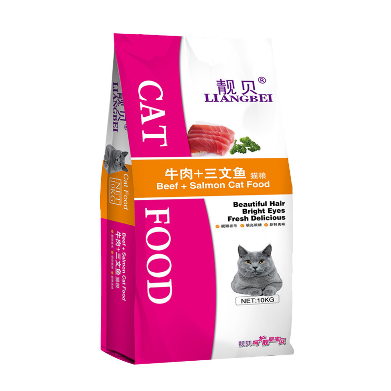 Liangbei cat food 10kg beef salmon beautiful hair Beautiful hair hair removal ball Blue cat British short Bosh cat staple food