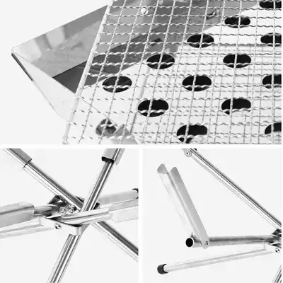 Outdoor grill folding portable stainless steel thickened carbon grilling stove field picnic multifunctional kebab shelf