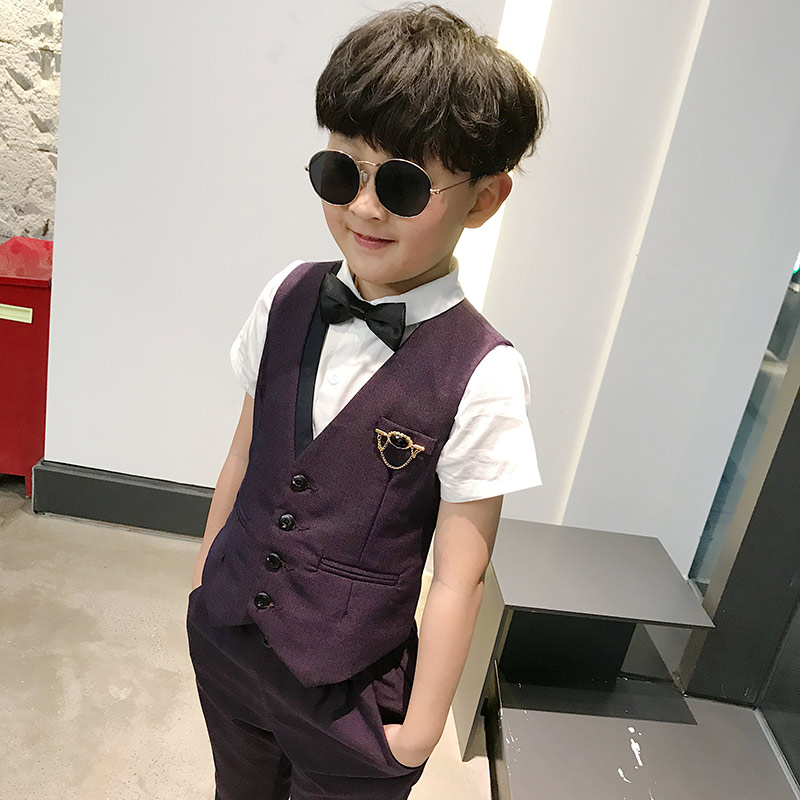 2019 spring and summer new boy suit vest suit short-sleeved flower girl dress children's suit three-piece costume
