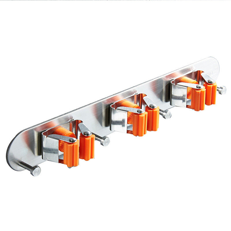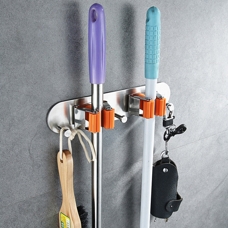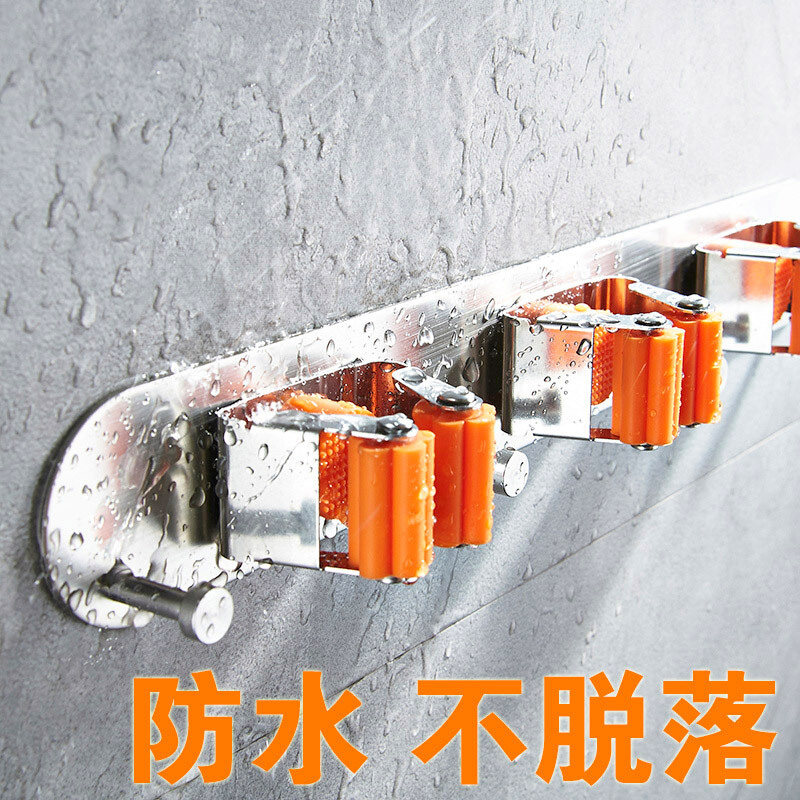Free Punching Mop Rack Sweep frame Hung Home Balcony Makeup room Multi-functional hooks wall-mounted Mop Clip Containing shelf