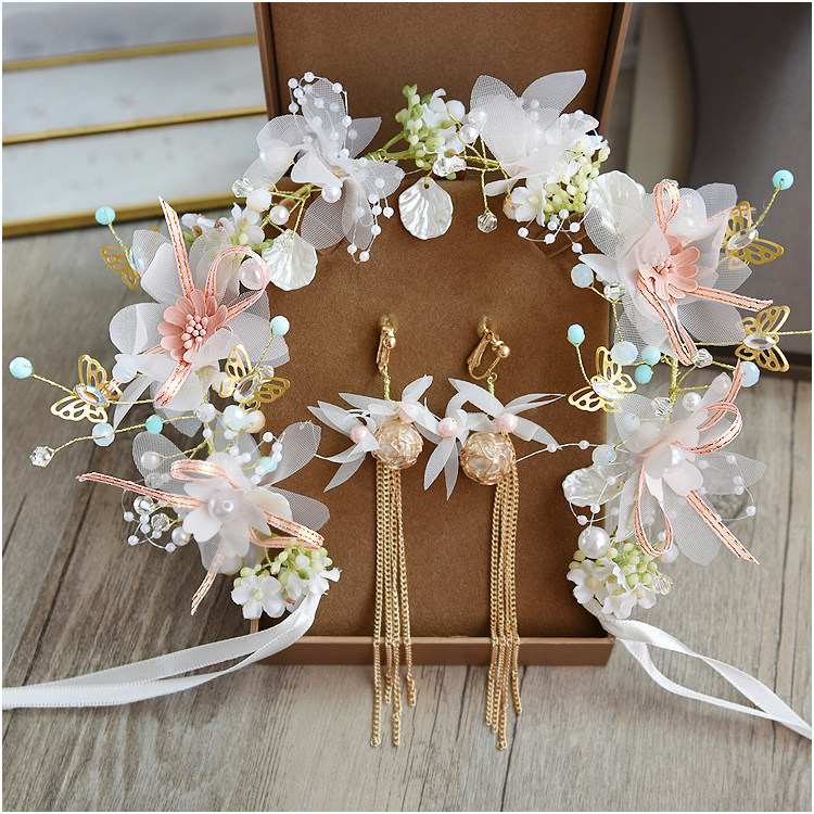 Flower fairy beauty crown wreath headdress children's bride photo butterfly headband performance stage catwalk accessories