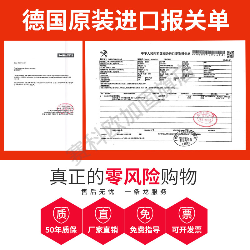 Imported quality inspection package passed Hilti planting glue RE100 500 RE10 HY200 Hilti quick-drying planting glue