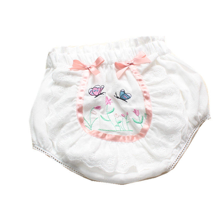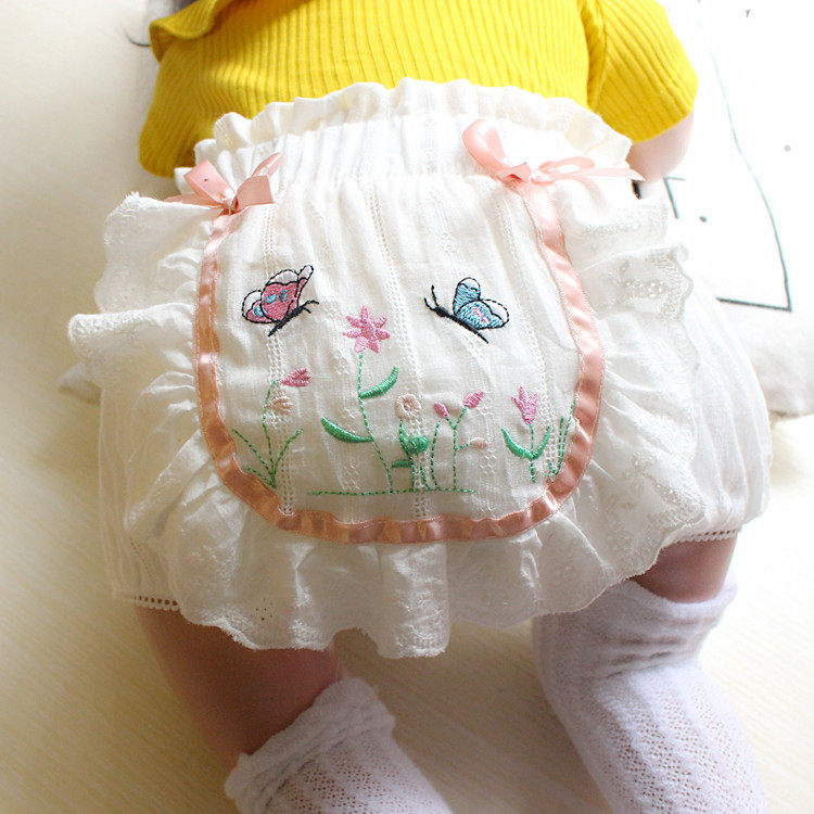 Roletta Wind Girl Summer Shorts Baby Butterfly Embroidered Bread Pants Baby Pure Cotton Lace Pants PP Pants