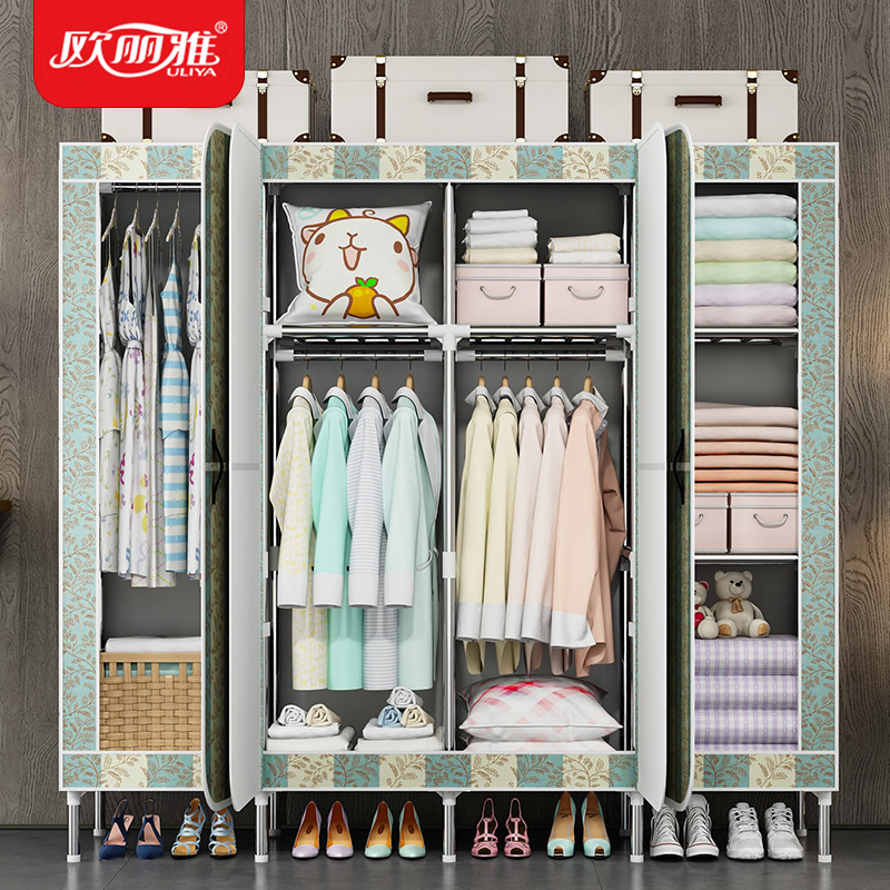 Simple wardrobe Rental house cloth wardrobe steel pipe thickened reinforcement home bedroom simple door hanging wardrobe