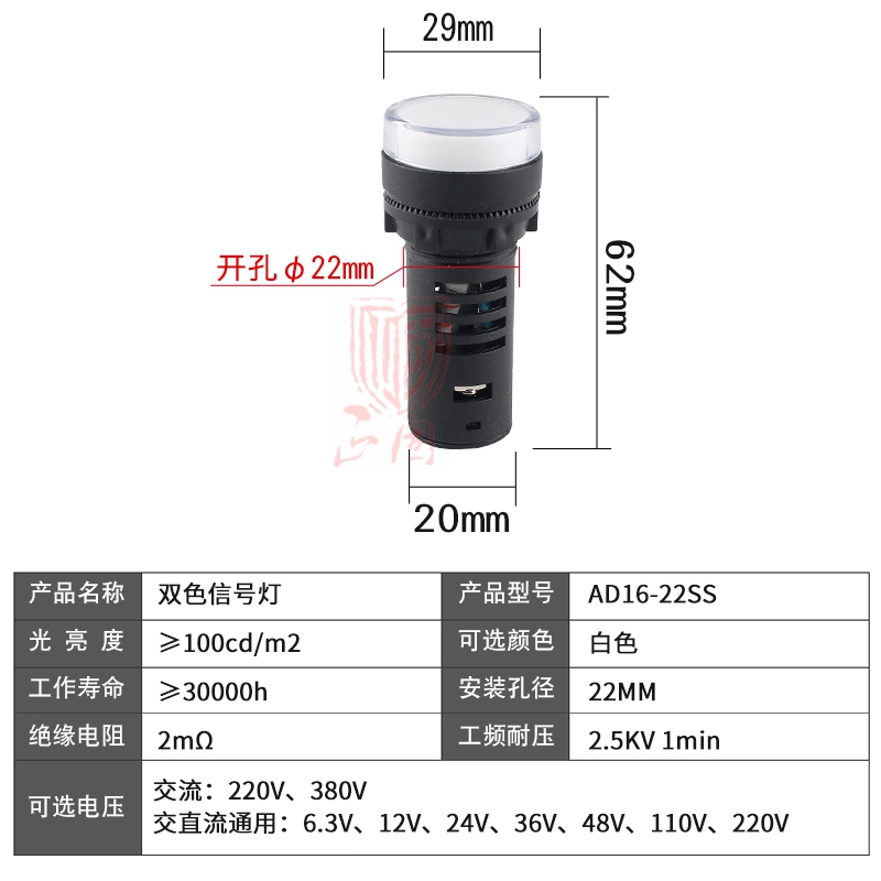 Two-color indicator AD16-22SS red-green switching signal light power supply working 12V24V220 drilling hole 22mm