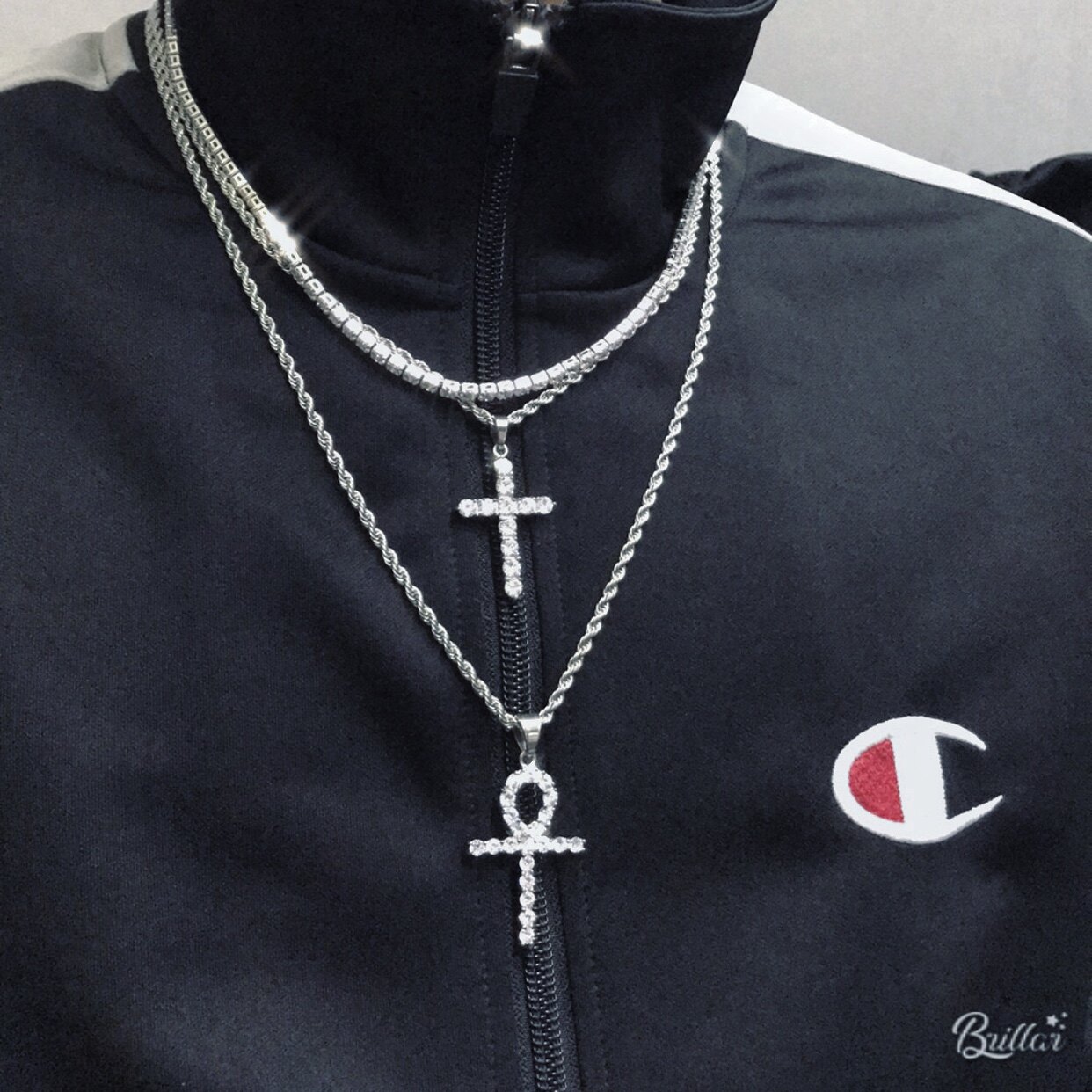 Cross round cross full diamond separate chain 50cm full diamond separate chain 60cm cross round set
