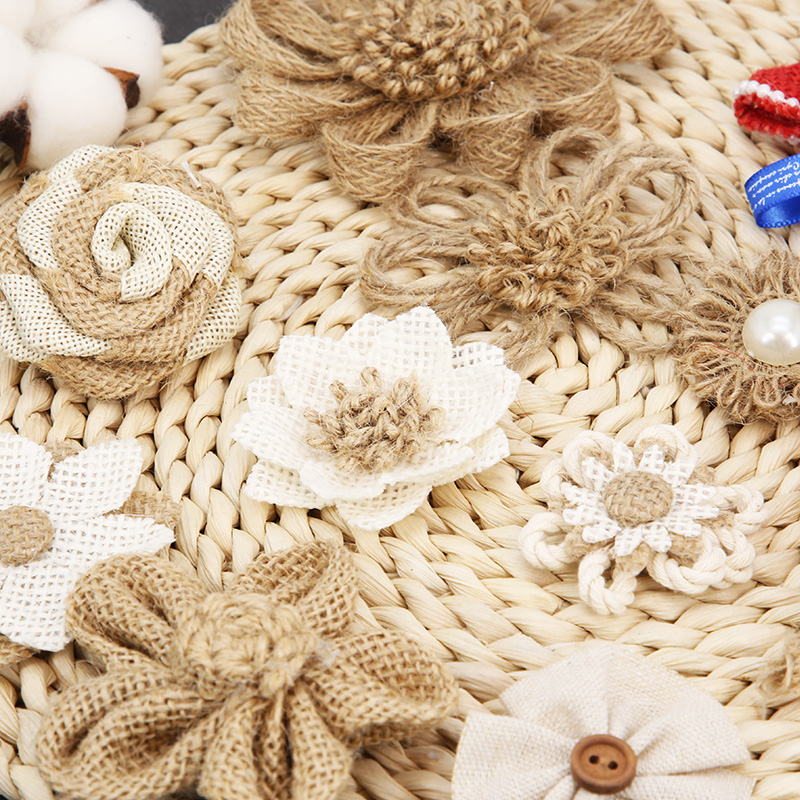 Hemp rope small flower decoration handmade diy making kindergarten ring creation arrangement bow linen flower material accessories
