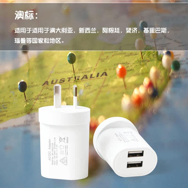 Australasia Convert plug Australia New Zealand Argentina Tourism 5V2 4A Mobile Phone Tablet Dual USB Charging