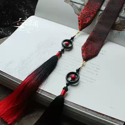 Yunshen Pavilion Yiling texture black red gradual layer tassel dark paragraph jacquard silk men and women touch the head Hanfu tassel hair band