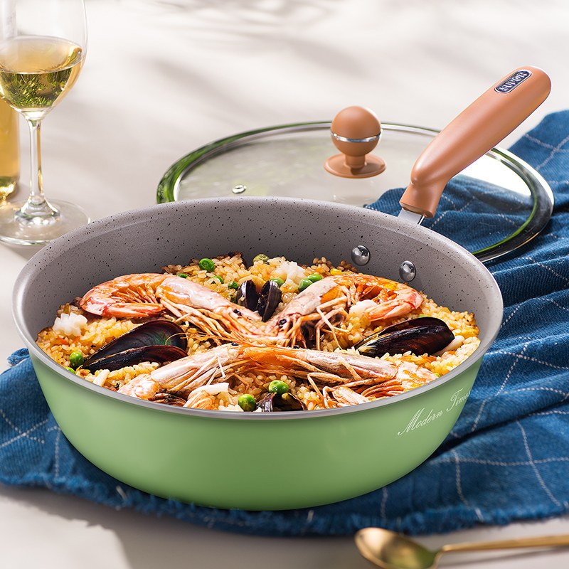 Supor fan color series wok Maifan stone color light oil less smoke non-stick pot 30cm induction cooker gas universal pot
