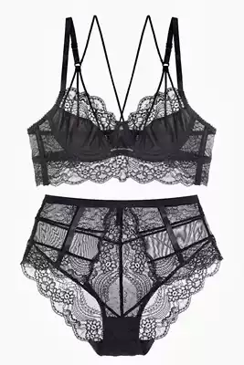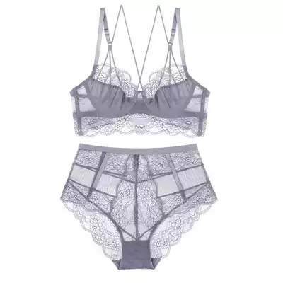 French ultra-thin sexy lace underwear suit see through no sponge, no bumps big chest show small gathering high waist bra