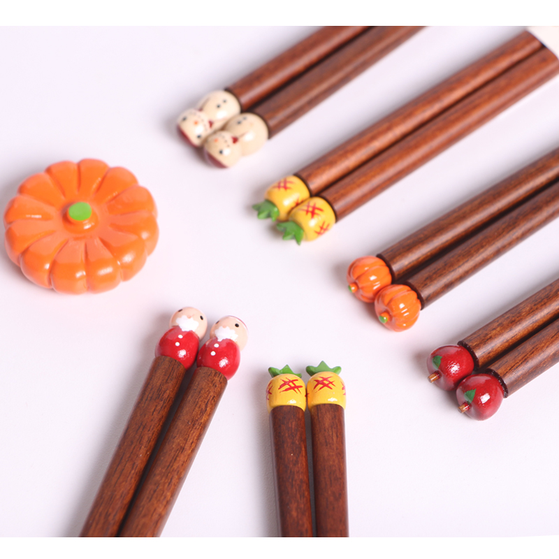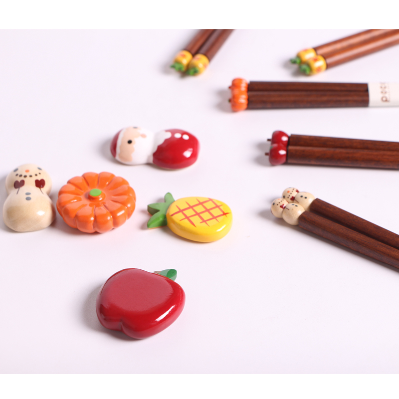 Japan imported cute cartoon natural solid wood chopsticks Zakka adult children's chopsticks household chopsticks rest support non-slip