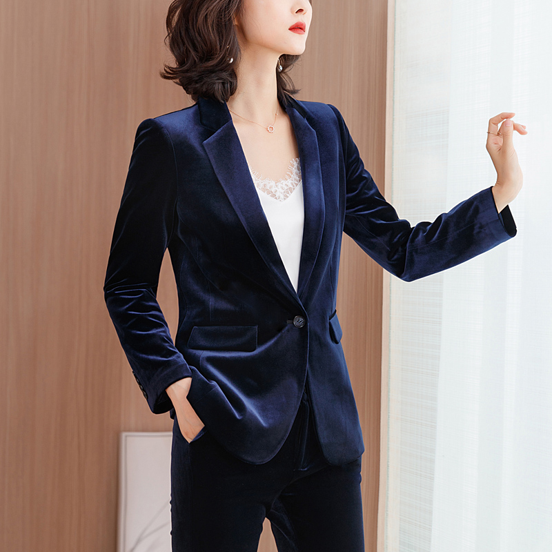 Gray velvet blazer women's high-end professional suit fashion temperament top Gold velvet small suit wide-legged pants