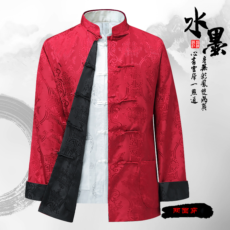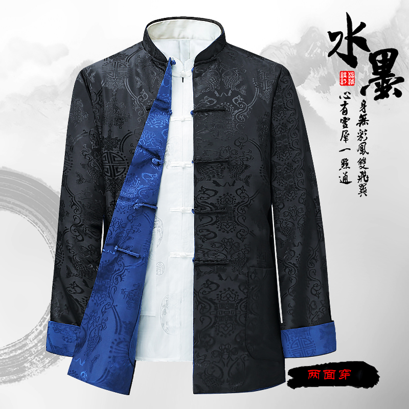 Spring and Autumn Tang suit men's Chinese style dad Hanfu coat middle-aged and elderly grandpa double-sided long-sleeved elderly birthday clothes