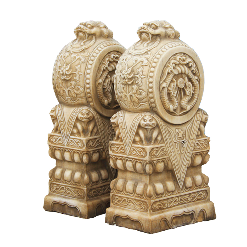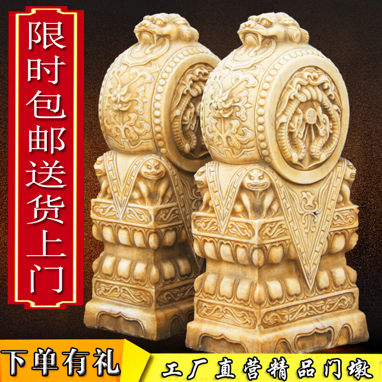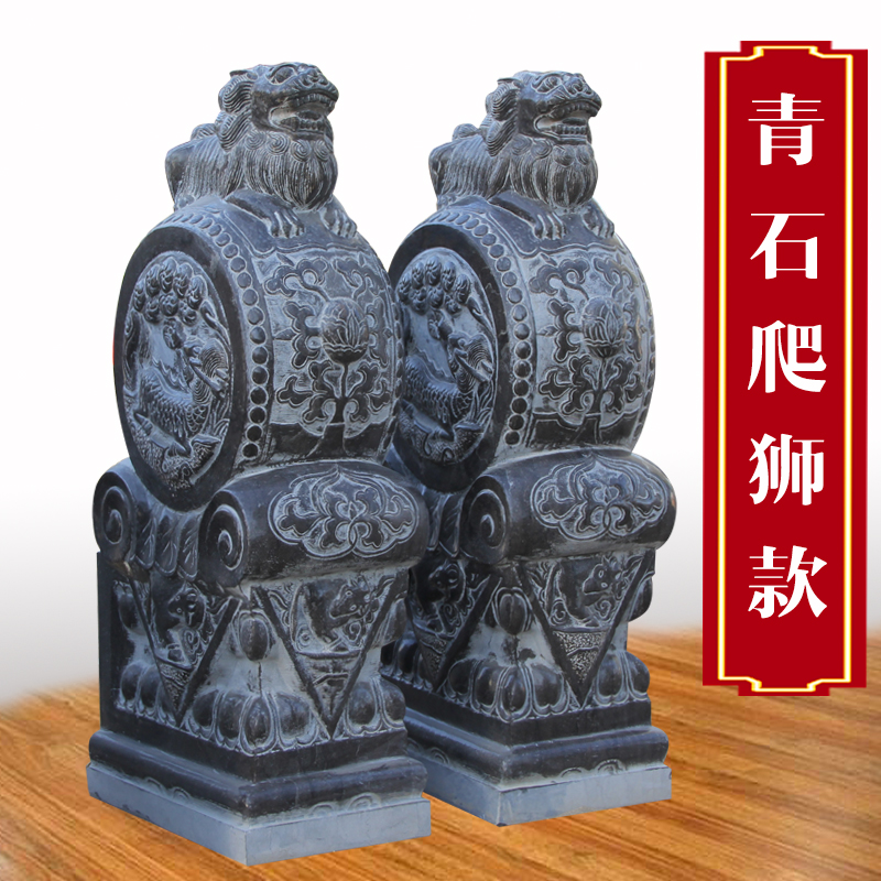 Stone carved door mound holding drum lion pair of home town house green stone for old imitation ancient stone drum small elephant trick of fortune and leopard